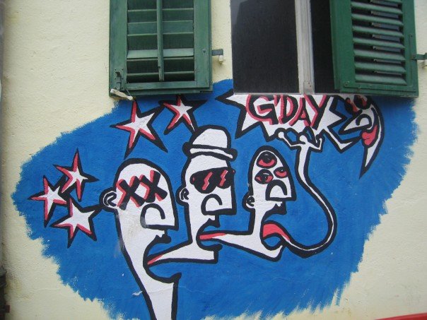 Our final stop, we drove to the Roman ruin castle atop the town’s highest peak and walked around the rubble. It started to rain, pitter patter, so we found the Nations Day celebration tent which wasn’t hard to find as all you have to do is follow your nose to the smell of sausage. We sat down inside the tent and ordered a beer as we knew we would be sitting for 3 hours. The first act was a traditional Swiss Quartet (one stand up bass and three guys playing the Swiss Orgal). It was really catchy at first, kinda like polka, but after an hour of it I think I was going to go insane. Patrick started laughing as he hates it, I assumed it was used as punishment for those convicts in prison with particularly seedy pasts. The second group was a blue uniformed marching band. The best part of the band was the little old man in the center who was in charge of swaying the regional flag to and fro. We joked that he had the hardest job and had to practice at least twice a day, more than any of the musicians. The last two acts were a real treat; a huge 30 person yodel fest (yodeler hee hoo) and an Alp Horn trio (the horns are HUGE and exactly like the ones in the Ricola commercials). The night finishes with a big firework show and the National Anthem (I hummed with respect and patriotic pride). We hopped into the car as the rain poured down, I opened my window so I could stick my hand out into the rain. We turned on the radio and listened to “It’s just a little crush”. As we left the Alp region back to the capital I looked out into the dark black night and could see what looked like little fire fly’s twinkling all over the hills. These were in fact the lights of the many families enjoying their Nations Day celebration inside their dry chalets. A very busy 13 hour day, I felt satisfied that I had seen the “real Switzerland” and dozed off to sleep.