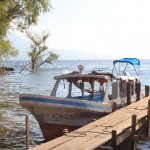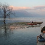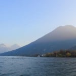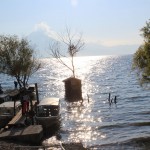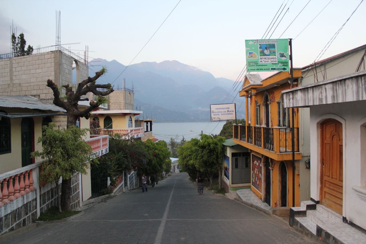 Twelve native villages, blue-grey mountains and three volcanoes line the shores of this lake resulting in a wonderful combination of unusual natural beauty and traditional culture. Gemma and I arrived at the lake just as the sun was itching to set, after a busy day at Chichicastenango market. We hopped off our bus and walked to the dock where boats depart for the various villages across the water. We had to wait a while because none of the boats would leave until there were at least twelve people ready to depart. I jumped for joy when I saw a gaggle of indigenous Mayan woman skipping towards our boat. We zoomed across the lake for about an hour, first stopping at popular backpacker haunt San Pedro and then at San Juan la Laguna where we would be staying the night.