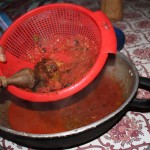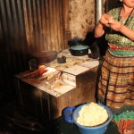 As soon as we hopped off our boat I was taken aback by the remains of last years flooding. The shores of the lake had now extended and several shops and houses were under water. A bit eerie! San Juan la Laguna is made up of 3000 inhabitants, mostly Mayas. We huffed and puffed up a steep hill and arrived at Rupalaj K’istalin the community based ecotourism organization which would be coordinating our stay via my work with Planeterra. Gemma acted as interpreter as the President and Secretary of the organization welcomed us to their village and informed us of the history and goals of the organization. We then grabbed our bags and greeted our homestay family where we would be spending the evening and following morning. We placed our bags in our humble bedroom and joined the mother of the family (and several of her little inquisitive kids) in the kitchen as she prepared our dinner. Her kitchen consisted of a simple table and wood burning stove. I helped her prepare a few tortillas but mostly watched as she prepared a delicious traditional meal called Pepian. This chicken dish (made from the little birds poking about their property) is made of roasted tomatoes, sesame, garlic, pumpkin seed, dried chile, annato, fat pepper, clove cinnamon, cilantro and celery leaf. Our dinner was served with hot tortillas and rice.