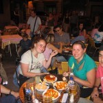 Helen and I were off hiking to our new sibling hostel and arrived in no time. We were met with a broken elevator and had to lug our luggage up 4 flights of stairs. Helen again was mumbling Scottish obscenities while I tried to prevent myself from falling over dead. We threw our stuff into our rooms and met up with Borjas, Serian and Joaquin at the Opera metro station. We made our way to an outdoor spot on the street that was bustling with busy and brilliant street side singers. I had a beer and we all shared tortilla and potatoes bravas. We then walked to a large square and sat out for about an hour sipping on 2 jugs of Sangria between the 5 of us. The best memory I have of this moment of our evening is the couple sitting behind us snogging as if they had 1 hour left on earth. We all got up and wandered around the city and got to bed by 1am.