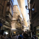 In the morning I bid Helen goodbye whilst holding back tears as she headed to Barcelona. I met Serian and Joaquin at their building and the three of us got pleasantly lost within the metro and bus station approximately 5 and 1/2 times. The bus trip was approximately one hour to Toledo and we all chatted and napped a bit along the way. Toledo has a lot of character…the entire city is made up of winding streets with strips of canvas hung above to create shade for pedestrians. The entire city sounds of birds…thousands of birds everywhere that sort of look like bats, swooping in circles all around the plaza and city.