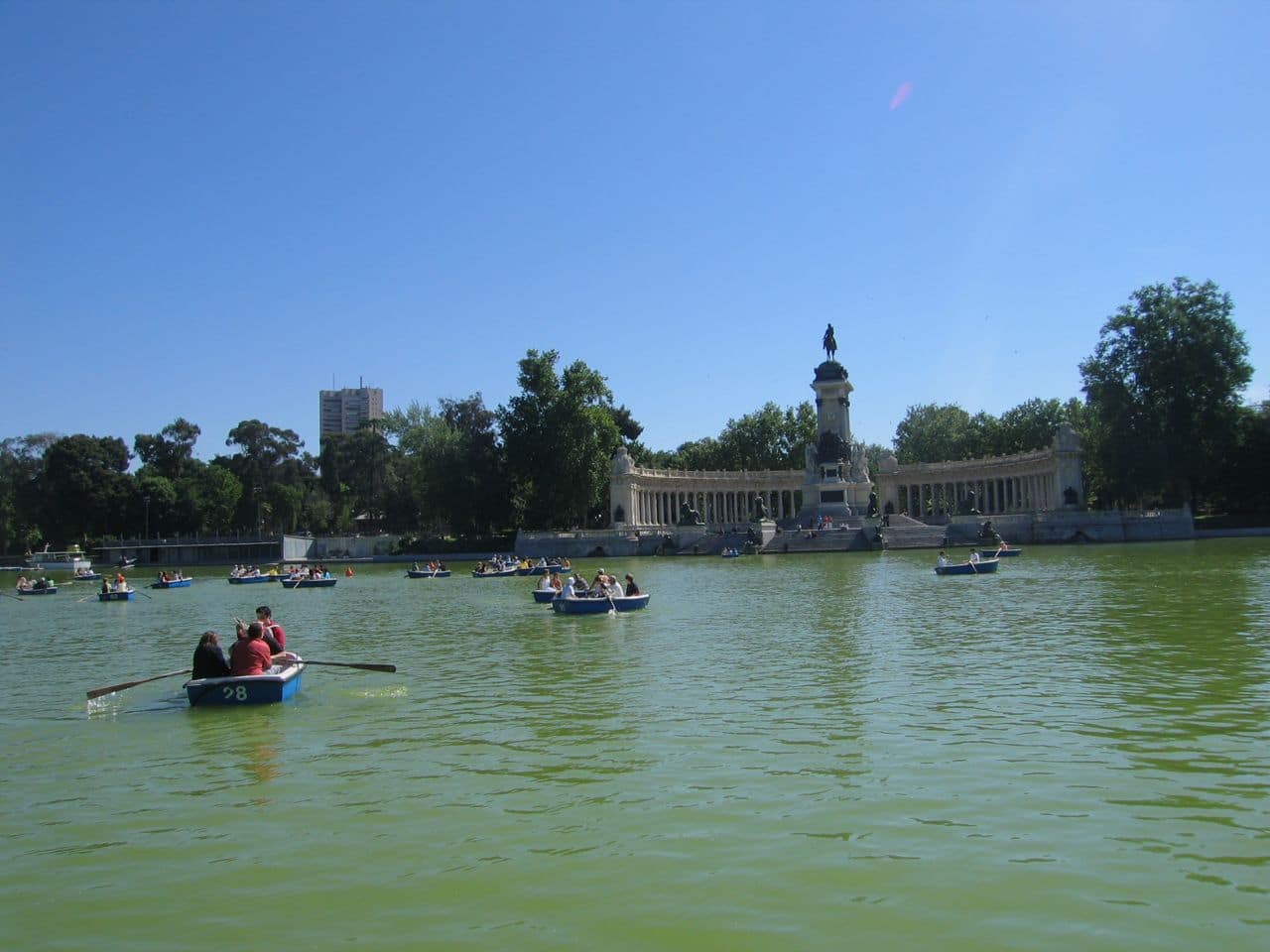 Leaving the Prado I walked through Parque Del Buen Retiro a huge garden that reminded me of Versailles. My favorite location in the park is the huge man made pond which has a gigantic sculpture and fountain on the north side. People rent row boats for an hour and paddle along the pond. It is beautiful to take in and just stare at under a looming shady tree. The gardens are beautiful with ornamental shrubs, roses, tulips and cactus. Walking through the eastern side of the park I ran into several locals playing chess and cards in front of a cafe, they live a great life of relaxation over here! My final stop in the park was the Crystal Gardens a building made completely of glass which overlooks a small pond. In the center of the pond you can find a giant fountain spraying into the sky which pleasantly provides a cool refreshing mist to those gazing over the bridge. I walked up to Plaza de Cibeles and headed west to find the shopping district. I found the most amazing thrift stores on earth. The best location was a large three floored circular shaped building which had private vendors throughout. The place smelled of incense and the sound of Indian pop music was beating overhead. A very cool local hangout indeed. The bottom floor had a chilled out bar and crazy fashion salon where people have their hair cleaned into marble basins. I have never seen so much thrift. None of it was second hand but it was all locally made and original as can be. The center of funk was where I stood for that short hour of integument. I found three stores that sell Munichs. They are the most amazing shoes when you look at them up close. One of them was made of Indian pillow cases and I saw one made of Zebra hair as well. The prices range incredibly from 110 euro to 180! I will be buying a pair in the next day or so as I have no shoes to get into the bars and clubs over here, style is a must. I have also fallen in love, deep love for Diesel and Energie. It seems that in Europe you need zippered decorated with studs and acrylic painted flowers and birds on your jeans to be cool.