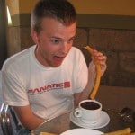 At 4pm Helen Voss arrived, my new best friend from Glasgow. I was famished and had sorted out a place to grab a bite on the map. Sen Gines Choclatieria a 110 year old Spanish style chocolate house. Inside it looks somewhat like an old 80’s diner yet classier and decorated with marble and gold trimmings. We ate the traditional churros with a coffee cup full of the most wonderful silky substance: hot chocolate like never before, the consistency of hot pudding but tastes as if you had melted solid Belgian chocolate and decided to dip long tube like deep fried doughnuts. As I say the Spanish are doing something right. We then found the local super market which I always love to visit to check out how they package different foods and what sorts of things they have here that I can’t get back at home. I picked up a one litre bottle of Nestle water for 35 cents! Lugging it around didn’t really bother me, but I knew I needed to have it on me as I was just about to have a life changing experience at the bullfights, which I had heard tend to be rather sweltering hot.