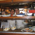 It was now after 10pm and the night was just starting. The streets were packed and restaurants and bars were a bustling. We walked past a neat outdoor patio spot that specializes in one euro panninis (over 100 on their list!) with every purchase of a drink. I don’t know how the restaurants make money here, possibly at home they are just taking advantage of us! We met up with the local girlfriend who had a car and drove outside of the city to the most amazing restaurant. Arriving at 10:30 we had to wait a while to get a seat as it was packed. We sat right in front of the kitchen as we were waiting and Helen I had great fun watching them busy in the kitchen. This place specializes in a dish attributed to Madrid called Huevos de lucio. French fries topped with mashed eggs (about 3 eggs fried and attacked with a knife so they goo all over the frites). What a wild idea for a french fry topping! Once we sat down we ordered and ate in the great style of Spain which can be described as copious amounts of food shared between friends. We started with an order of the Huevos de lucio but chose to get a topping of fried Spanish ham on top (melt in your mother yumminess). Other varieties were bacon, raw ham and stewed green peppers. I had a glass of white wine with a bouquet reminiscent of fruit punch. It was so fruity and lovely; I detected pear, pineapple and peach. We then ordered the best home made croquettes which I found out are béchamel sauce with chicken and ham chunks rolled in crumbs and fried. These could potentially be my new favorite snack food. Our final food for the evening was a divine platter of about 8 pork tenderloin medallions on the edge of the plate topped with apple sauce. The center of the plate had about a cup of caramelized onions, I was exhausted at this point from continually moaning and going on about how I was so happy. This was by far a great night, the best way to see a city is from a local and I am so glad Helen hooked us up. I have invited the gentlemen to Toronto any time to visit so I can treat him to a tour as well.