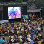 I heard an odd noise and attempted to follow it (as any normal tourist would do). Low and behold I walked right into a huge party! At the very end of the fortress looking down over a cliff I could see at least 1000 people decked out in yellow and blue. Later I discovered that I had just arrived an hour before the live airing of the Sweden vs England football match! Prior to the game a famous Swedish band by the name of Bjorn Rostenstrom was playing the most eccentric Swedish folk rock I had ever heard. Bellow I stared at the many drunk Swedish fans who could barely stand up prior to the game even starting. It was 9pm and the game was about to start. The clouds were dark navy blue and the wind was getting a bit crispy. I initially sat beside two very drunk Norwegians who told me how much they hated Norwegians (pointing at themselves) as they are all boring. However they did say they love Swedish girls, as they have an affinity for strong Viking blond men…these guys were ridiculously funny. I then choose to move to the right behind one of the fortress buildings in order to get myself out of the wind and found myself sitting beside what would be my four lovely companions for the evening.
