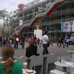 After a short walk we arrived at the Centre National D’art Et De Culture Georges Pompidou, a spectacular modern art gallery. The actual building is an art spectacle in itself looking like a crazy construction site with pipes of all colours and sizes scaling the building. The museum is set up as a long hall with different audio visual displays and oddities to sit and watch. My favorite film was of a man trying to write with his calligraphy pen as he is drenched by a hose. He continues to write even though the ink doesn’t even make an impression on the page. All of the famous modern artists from Duchamp to Kandinsky to Warhol were represented along with several fine modern sculptures. The oddest room of all was the area completely dedicated to weird phallic art, strange indeed. Amy was feeling a bit faint so we walked to a lovely outdoor cafe looking out onto the Pompidou. I had a cold hazelnut latte and a croque madame. We walked south over the river and took a few minutes to enjoy Notre Dame. Amy and I both agreed that it was beautiful but we have seen so many churches on this trip they have really lost their grand effect on us, desensitized to churches who would have ever thought. I finally found a copy of GQ and was pleased to snatch that up for later moments of boredom. There are people all over the city screaming and cheering, they are from Barcelona it seems there must be a footy match today.