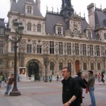 As soon as I got into my room I shaved off my 12 day old beard and it felt great. We then headed to a very gay restaurant and were seated with a stark naked Greek male statue above our heads. An interesting gentlemen seemed to stare at me for the majority of our meal I presume he was laughing at how we defiantly did not fit in. We looked like sore thumbed tourists for sure. I had a Heineken and Crepes with cheese and ham. I felt like my body was infused with warm buttery goodness. After dinner we walked towards the river and past the Hotel De ville. The streets were packed at 11pm along the gay strip with people eating their dinners and being merry. The luminous hotel de ville is beautiful at night and there was a special function there tonight as police sirens and escorts were following several large buses of well dressed individuals. We could see the top of Notre Dame from the river and the lights beaming from the Eiffel Tower…a hint of many good things to come.
