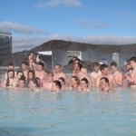 Once finished lunch we hopped on a bus bound for the ever so famous Blue Lagoon Thermal Spa for an afternoon of rest, relaxation and pampering. The Spa is located between the airport and city centre so is an excellent spot to visit before hopping on your flight back home. We took a 40 minute scenic drive to the spa and immediately hopped into the change rooms and met outside in our plush white robes. We were given a few drinks tickets to enjoy at the thermal pool side bar which were a nice treat. We were really lucky to have been blessed with a blue sky day. The sun was out and everyone seemed so content bobbing up in down in the piping hot indigo coloured steaming pool.