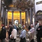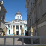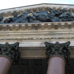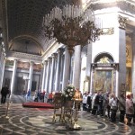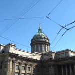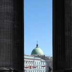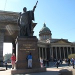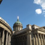 I had a quick shower, plotted a few to do’s on my map of the city and then ran out onto the streets to enjoy the blue sky and sunshine. My first stop was Kazan Cathedral whose great neoclassical colonnaded arms reach out towards Nevsky Prospect. Built between 1801 and 1811, its design by Andrei Voronkhin, a former serf, was influenced by St. Peter’s in Rome. Inside, the cathedral is dark and traditionally Orthodox, with a daunting 80 meter high dome. There was a long queue of believers waiting to kiss the icon of Our Lady of Kazan, a copy of one of Russia’s most important icons.