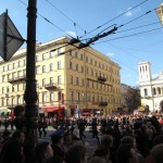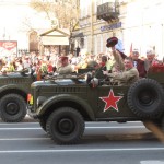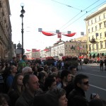 Once I had successfully overdosed at the Russian Museum I walked back to my hotel and was pleased to walk right into another Victory Day Parade which celebrated the countries veterans. I found the scene to be very touching as Russian youth screamed “Thank You!” to hundreds of the countries grandmothers and grandfathers who rode vintage wartime vehicles dressed in their military uniforms with hundreds of medals and ribbons on their shoulders. Obviously Russia has a rich military history and it was interesting for me to observe such a connected and patriotic crowd.