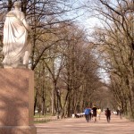 Once back outside I walked along Griboyedova canal to the cities famed Church of the Saviour on Spilled Blood (officially known as the Church of the Resurrection). This multi-domed dazzler, partly modeled on St Basil’s in Moscow, was built between 1883 and 1907 on the spot where Alexander II, despite his reforms, was blown up by the People’s Will terrorist group in 1881 (hence its gruesome name). It is now most commonly known as the church that took 24 years to build and 27 years to restore. Just behind the church I entered Michailovsky Garden’s through an iron gateway. The gardens were full of pedestrians and tweeting little birds with the first of springs bulbs sprouting through the gardens. The large Russian Museum stands proudly on one side, flanked by a u-shaped pond.