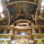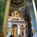 I spilled out into the street feeling inspired but mostly hungry. I marched over to The Idiot Restaurant where I accidentally got drunk on a pint of beer and complimentary shot of vodka. Once finished lunch I stumbled back into the street and headed to the cities famed St Isaac’s Cathedral where I spent the next hour sobering up while dancing to M83’s Midnight City. The golden dome of St Isaac’s dominates the city skyline. The French architect Auguste de Montferrand won a competition organized by Alexander I to design the cathedral in 1818. It took so long to build – until 1858 – that Alexander’s successor Nicholas I was able to insist on a more grandiose structure. Special ships and a railway had to be built to carry the granite from Finland for the huge pillars. The interior is filled with the mesmerizing glint of gold.
