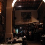 We took a taxi to the plaza again for dinner after resting at the hostel in the late afternoon. When our cabby stopped a boy opened our door and put his hand out for money. I looked back at him as we walked away and saw him running from cab to cab opening doors trying to make some easy money, or not so easy. We walked by the square cathedral again and I was much more impressed in the night dark as the lights of the cathedral made it sort of glow with spiritual awe. We walked around the entire plaza scanning windows for VISA signs as we had no more money left as it was our last night in Argentina. We passed by a sign that made us both laugh ¨Free Beer and Folklore.¨ We both joked about the idea of refusing to enter the establishment as we “don´t submit to free folklore!” We discovered that only one restaurant accepted VISA, it was the most expensive, how perfect! The spot is called Cava de Piedra (stone cave). It is a vaulted stone cave lined on both sides with dining tables. The bar is located at the far end with a beautiful massive oil painting of an aboriginal family. At our last swanky dinner I had a bowl of Sopa de Quinoa (my first Quinoa dish in South America!). A lomo (fillet Mignon) with moral mushroom cream sauce with warmed chunks of cheese and rosemary roasted potatoes. We both shared a brownie with mint ice cream and flambéed fruits marinated in Malbec red wine. With the last bite, we had consumed Argentina. This country is amazing, goodbye.