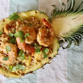 Add pineapple chunks and mix. Add shrimp, fried egg and green onions. Break down egg into rice and keep stir frying until shrimp is fully cooked and reheated, approximately 2 minutes.